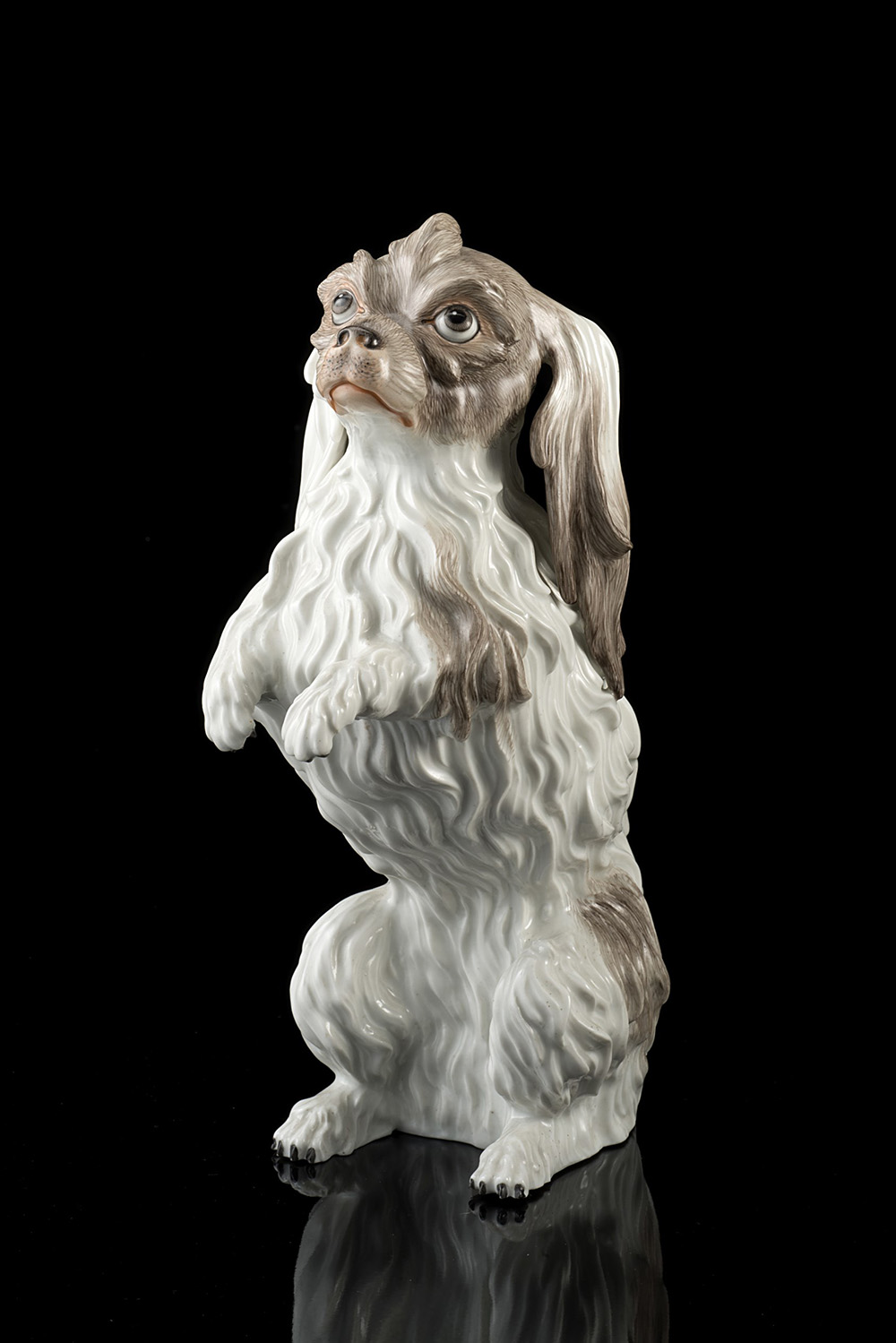 A small polychrome porcelain figure of a dog (h. cm 27) Late 19th century - early 20th century (defects)