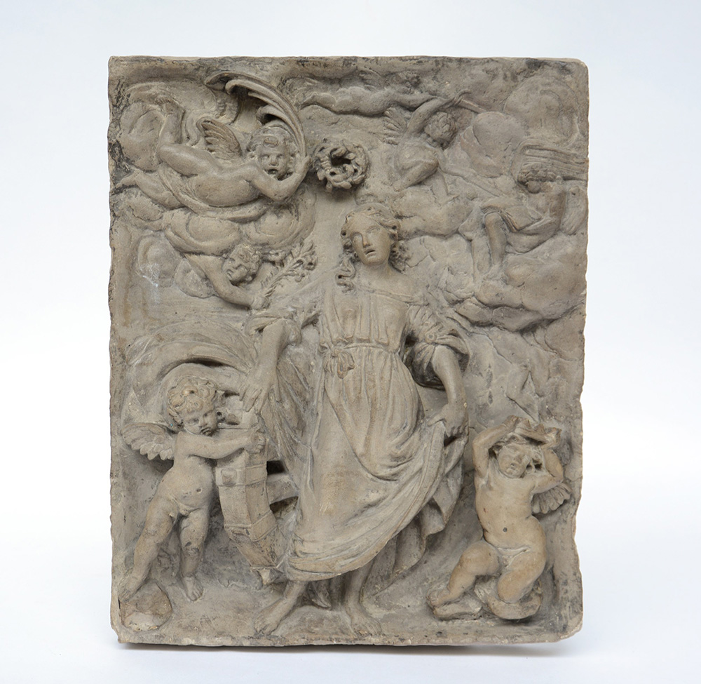 18th-century sculptor "Allegory of Saint Catherine of Alexandria" marble high-relief (cm 43x35,5) (defects)