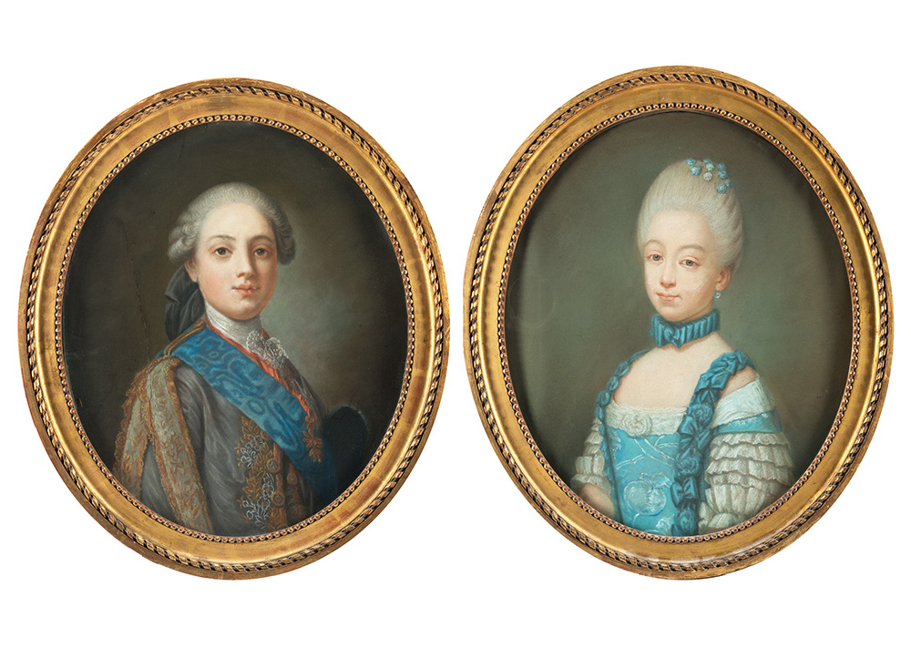 18th-century school "Potrait of young Ercole III d'Este" and "Potrait of young noble girl" crayon on paper (cm 60x52) framed (defects)