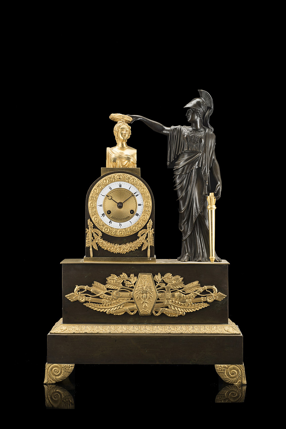 Pendola in bronzo dorato sormontata da scena allegorica