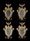 Gruppo di quattro appliques a tre luci in legno intagliato e dorato a teste...