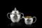 Lattiera e zuccheriera in argento, di forma globulare, decorate con fasce di...