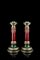 Coppia di candelieri in pietra dura, oro 14K, argento, smalto traslucido...