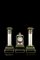 A hardstone, gold 14K, white enamel, diamond and cabochon three piece clock. Spurious marks: Saint Petersburg late 19th century, K. Fabergè and Mikhail Perchin (cm 10x5.5 ca.) (h. cm 13x5.5 ca.) (defects)