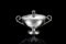Zuccheriera in argento di forma circolare con coperchio; superficie liscia...