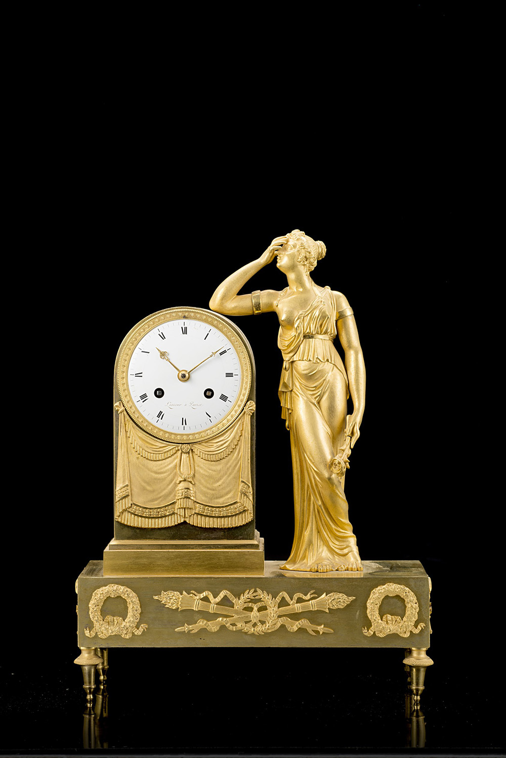 LESIEUR A PARISPendola in bronzo dorato decorata con figura femminile Epoca...