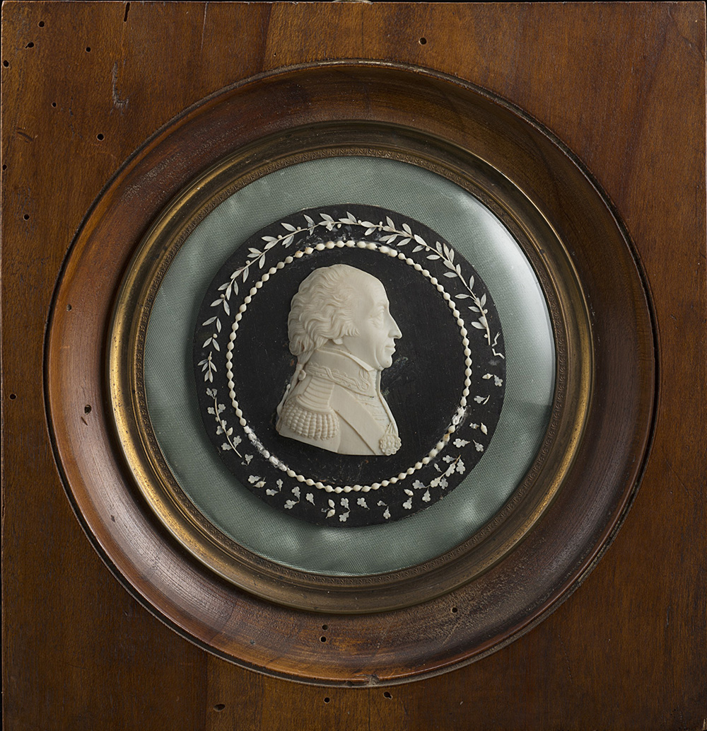 "Vittorio Emanuele I" ivory intaglio with ebonised frame. Inscription on the recto "Adèle Morra à son Père Charly 1849" (d. cm 7) Framed (defects and losses)