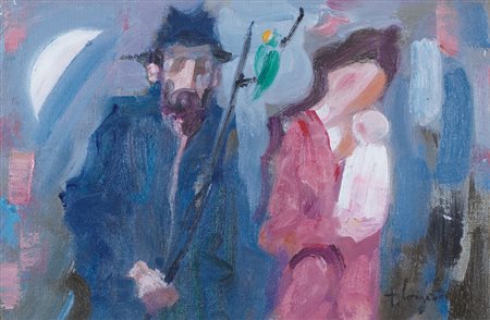 TRENTO LONGARETTI Treviglio (Bg) 27/09/1916 - Famiglia, olio su tela cm. 20x30, firma in basso a destra, dichiarazione d'autenticità dell'artista e Archivio Trento Longaretti su foto.