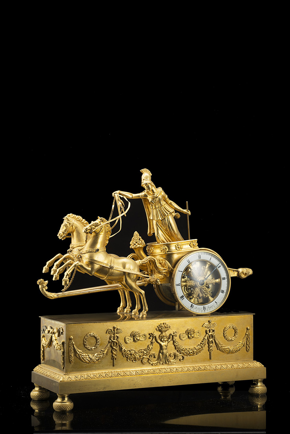 Ormolu mantel clock modelled with the "Chariot of Victory"
