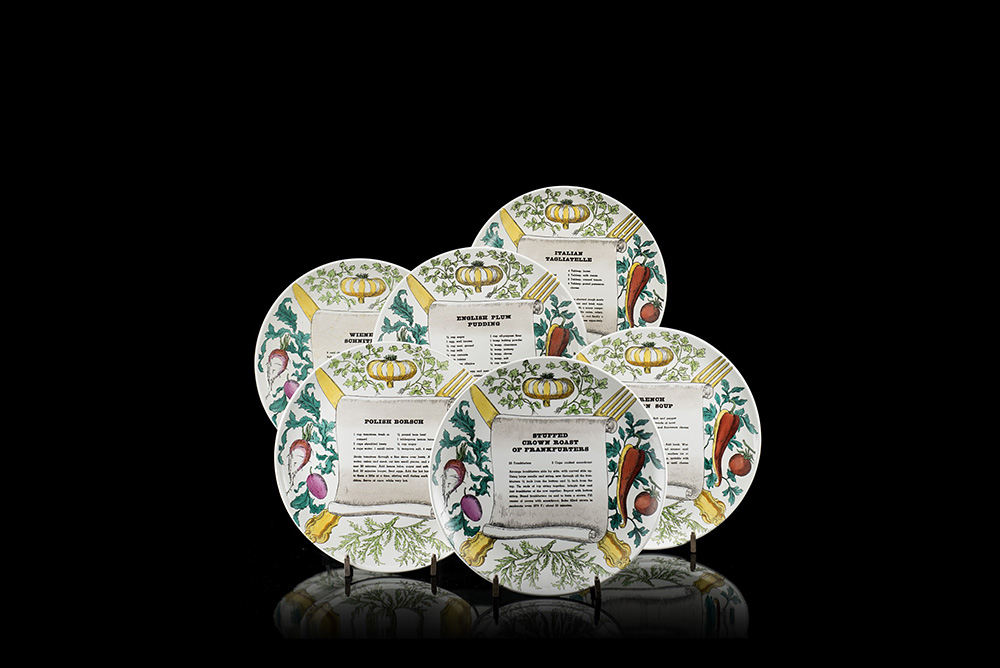 Lot 929 | Piero Fornasetti (Milano 1913 - 1988)Gruppo di sei piatti in ceramica...