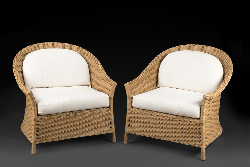 Lot 941 | Coppia di poltrone in vimini con braccioli, schienale e gambe sagomati....