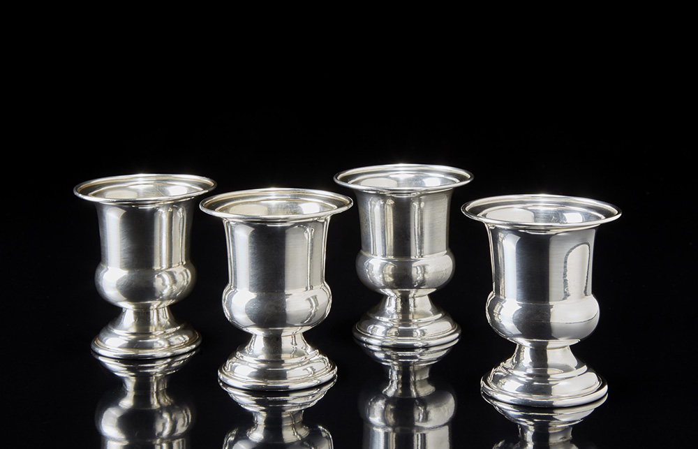 Gruppo di quattro vasetti in argento a corpo liscio marcati Tiffany & Co, sec. XX (h. cm 7) (gr 220 ca.) (difetti)