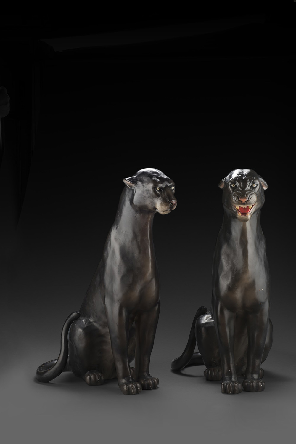 A pair of plastic models of panthers (h. cm 100) (defects)