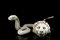 Lot comprising a marble sculpture of a lion’s head and a cement sculpture of a snake. Different sizes (defects and losses)