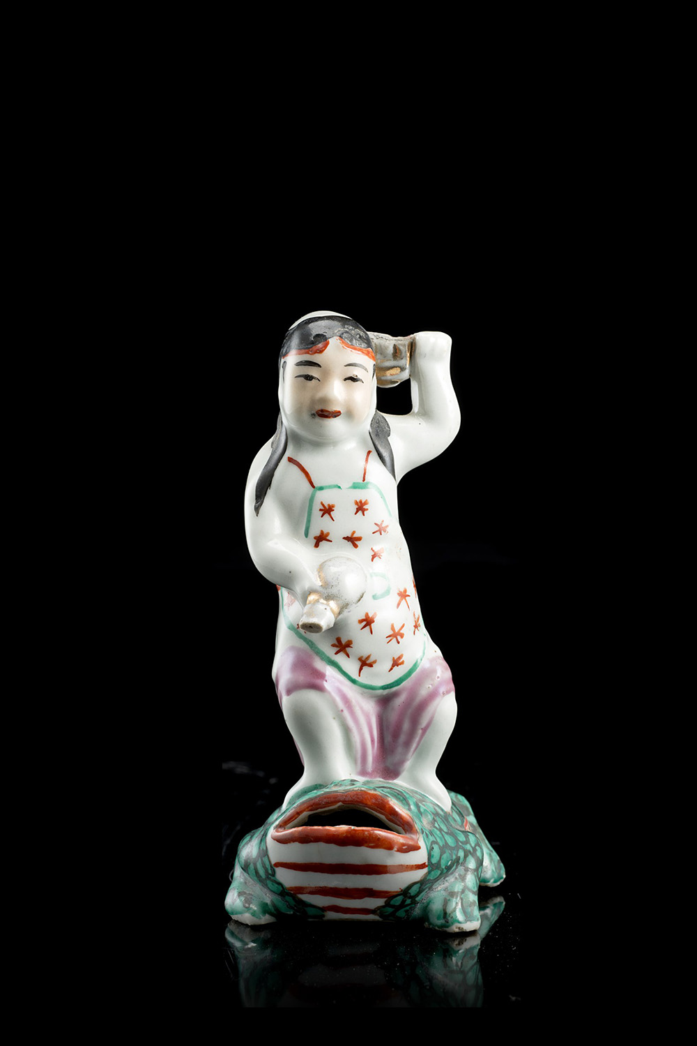 Lot 994 | "Figura su rospo" statuetta in ceramica policroma (h. cm 16) Cina, sec....