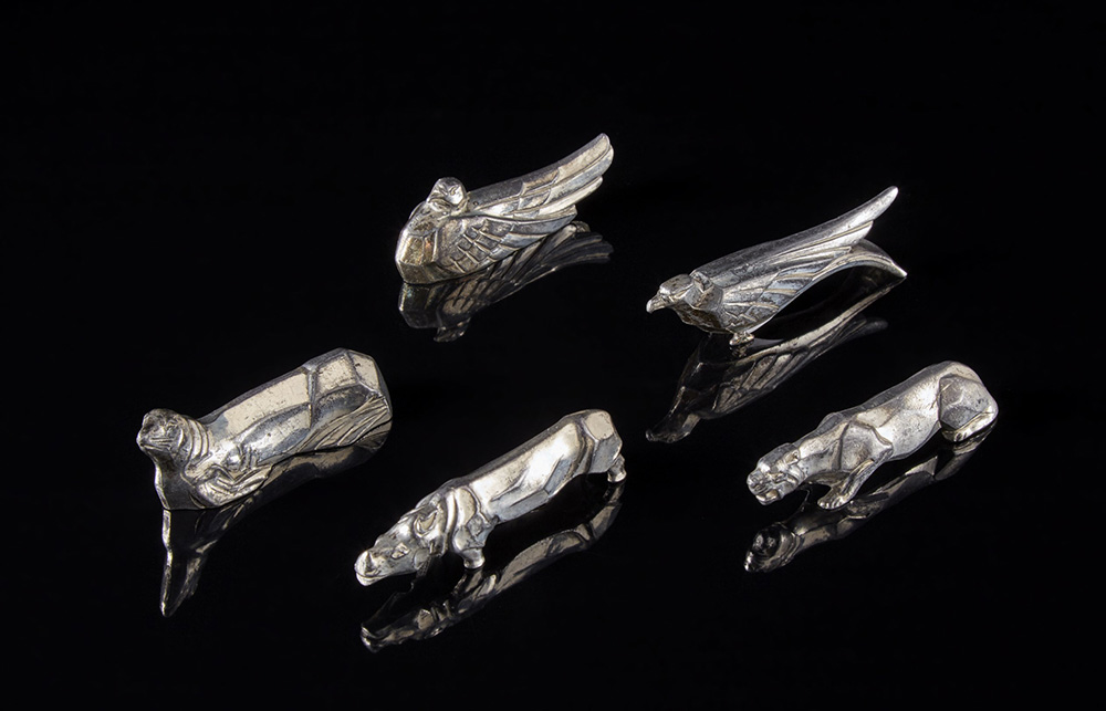 Lot comprising five Art Déco sculptures in the shape of animals (minor defects)