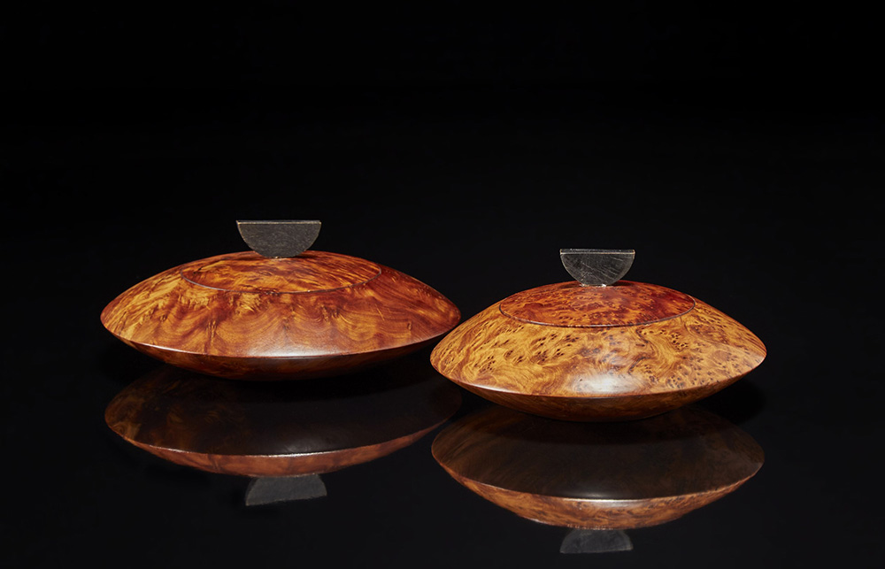 Lotto composto da due scatole di gusto Déco con prese a mezza luna ebanizzata