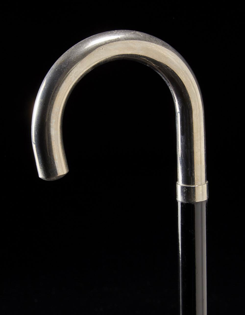 Bastone da passeggio in legno ebanizzato con presa in metallo argentato