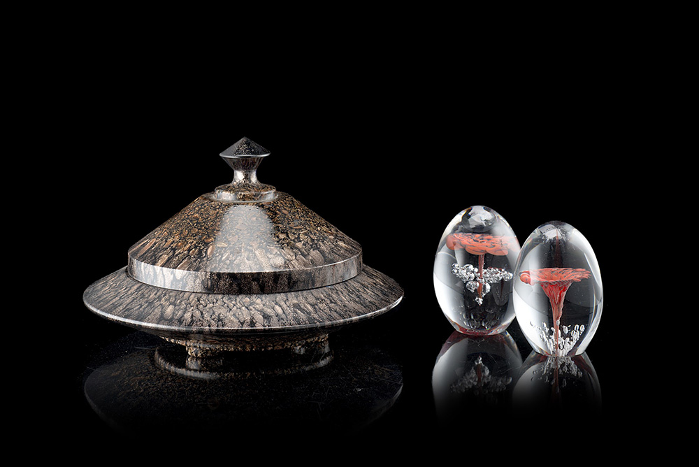 Different manufactures. Lot comprising two Daum presse-papiers and a glass bowl with cover (defects)