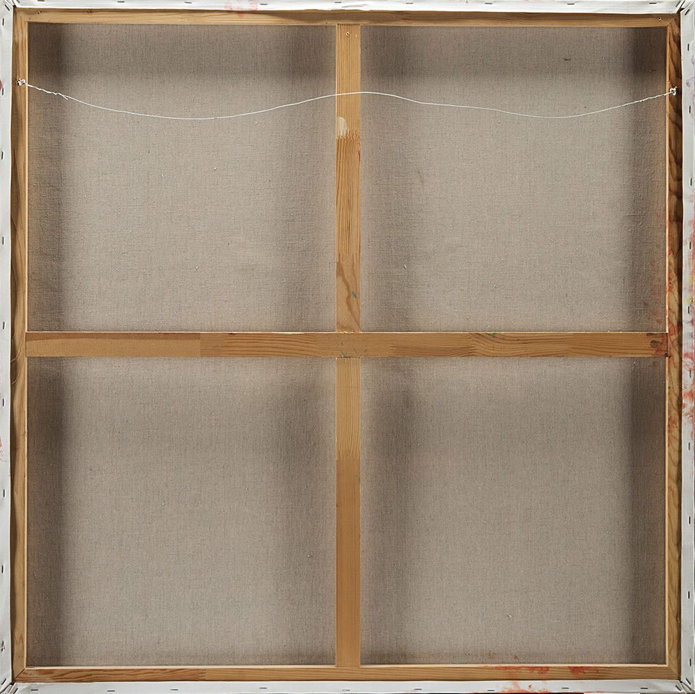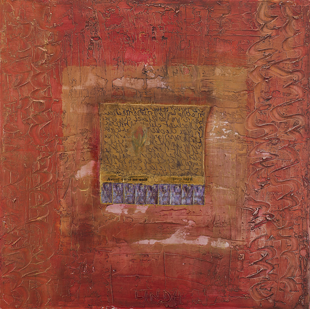Ignoto "Composizione" olio e tecnica mista su tela (cm 100x100) Iscritto Linda in basso al centro