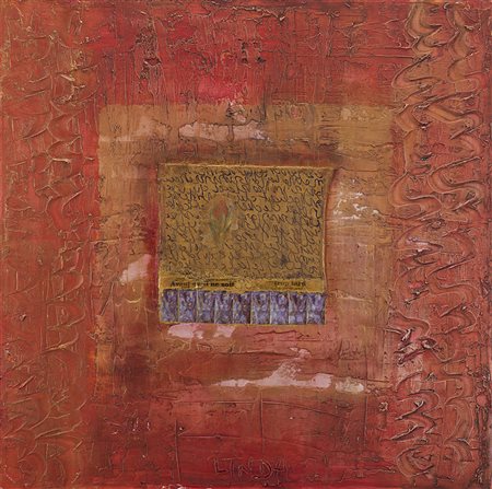 Unknown artist "Composizione" oil and mixed media on canvas (cm 100x100) Inscribed Linda