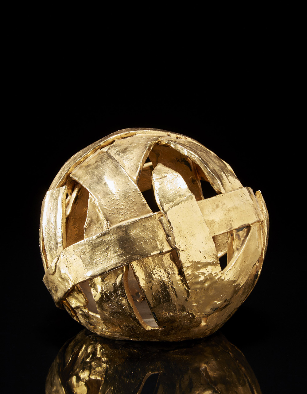 "Sfera" scultura in terracotta dorata (h. cm 24) (difetti)