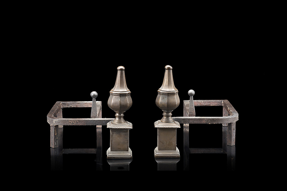 Lot 1090 | Coppia di alari in bronzo decorati a pinnacoli torniti, poggianti su basi...