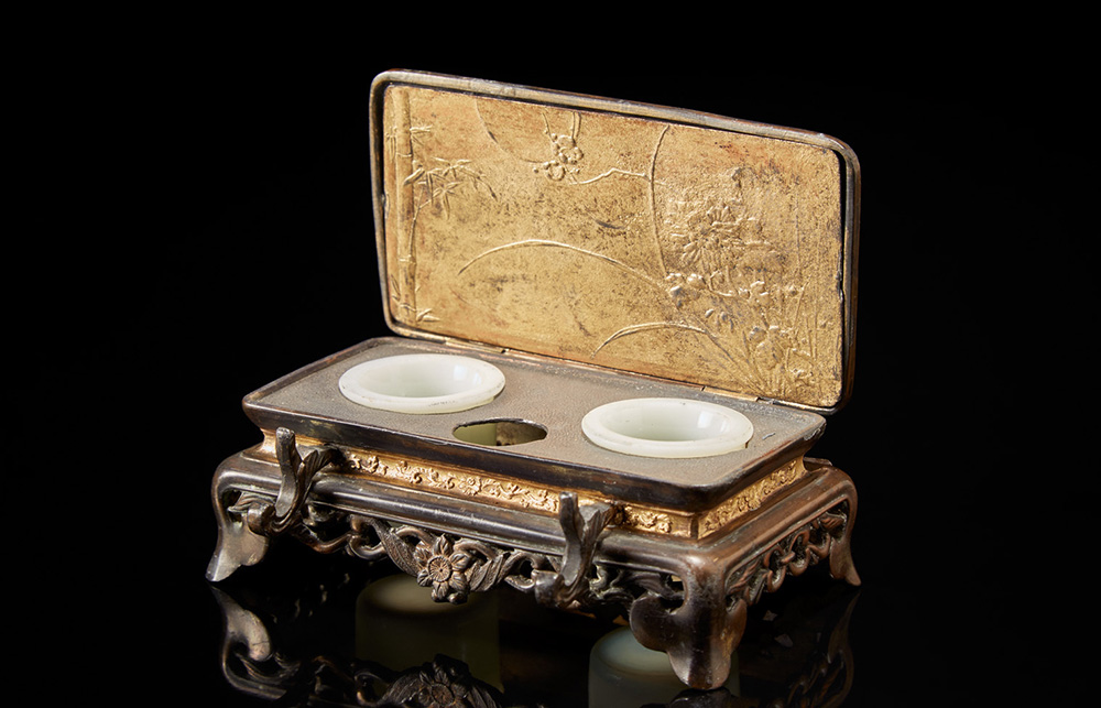 A gilt and pierced ink-well with case. Japan, 20th century