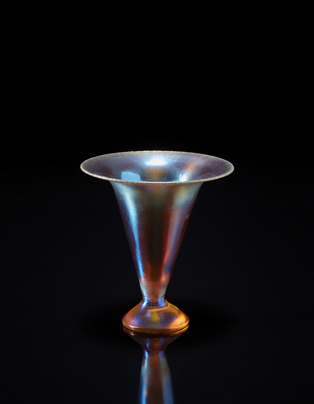 20th-century manufacture. Iridescent glass vase (h. cm 12,5)