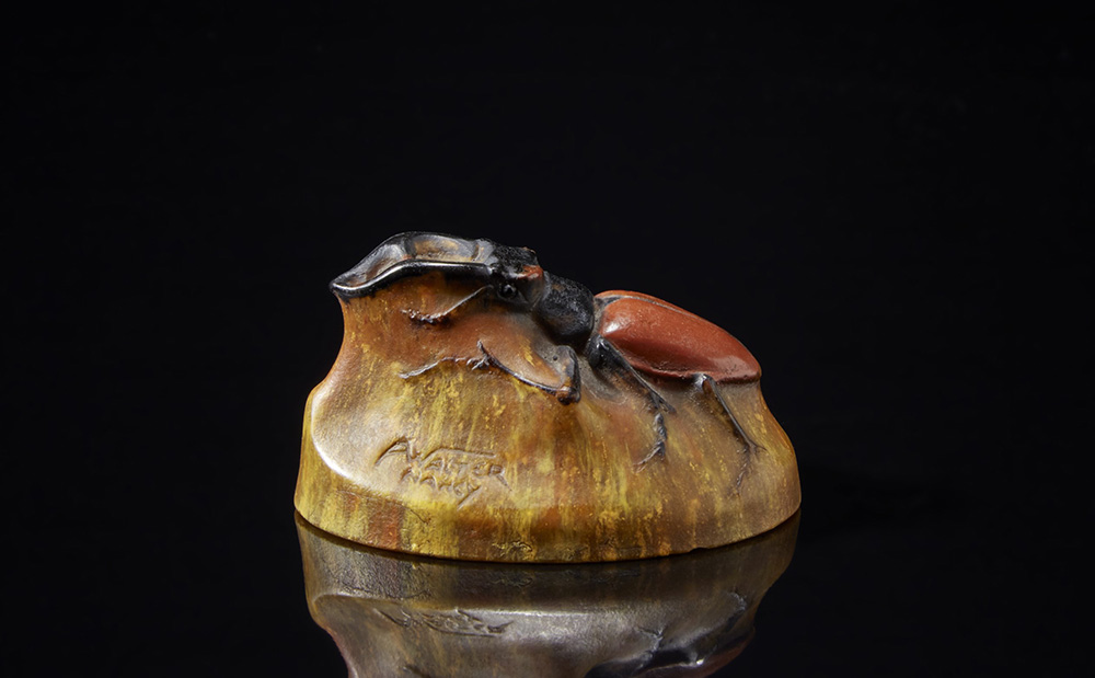 A vitreous paste presse-papier in the shape of a beetle. Nancy, early 20th century (cm 5x8) (defects)