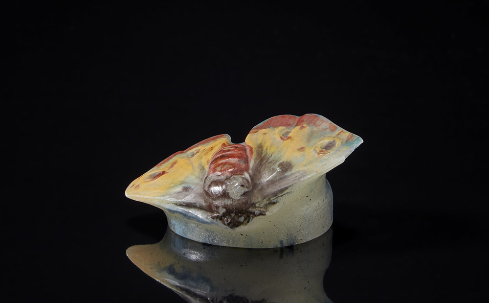 Presse-papier in pasta di vetro policroma a forma di falena. Nancy, inizi del sec. XX (cm 7,5x4x10) (difetti)