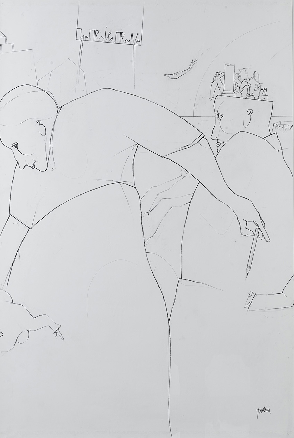 Emilio Tadini (Milano 1927 - 2002)"Le Roi la Reine" matita su carta (cm...