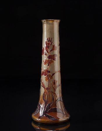 Gallé, Nancy Vaso di forma cilindrica strombata verso la base in vetro a...