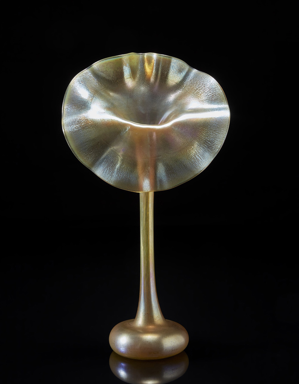 Vaso modello "Jack-in-the-pulpit" in vetro "Favrile". New York, inizi del sec. XX (h. cm 48). Firmato e numerato 7790C