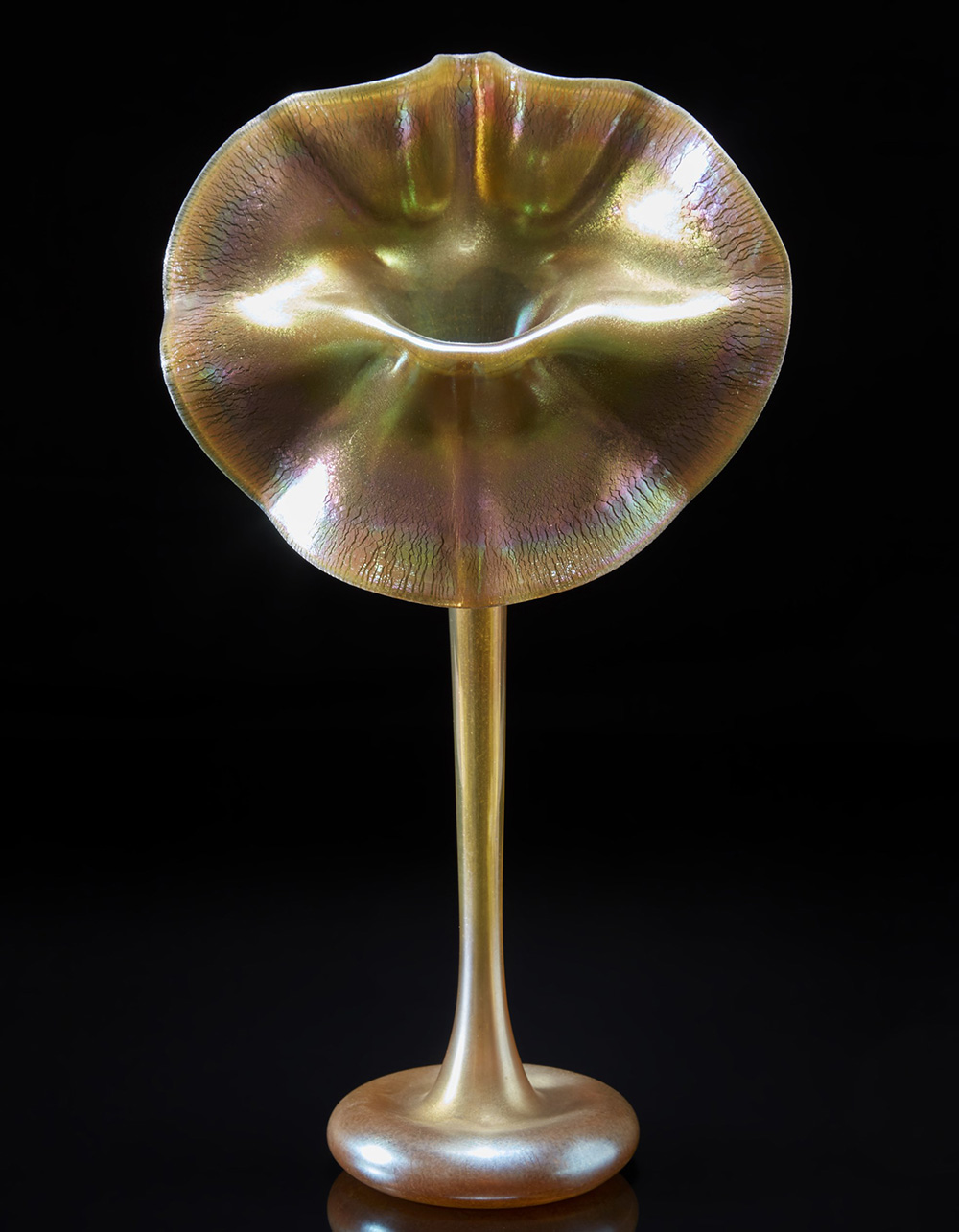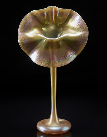 Vaso modello "Jack-in-the-pulpit" in vetro "Favrile". New York, inizi del sec. XX (h. cm 48). firmato e numerato 320L