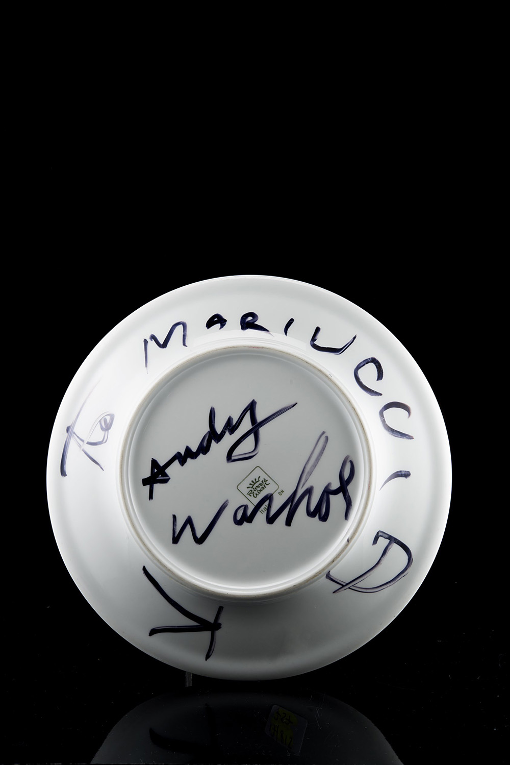 "Tigar" 1983, pennarello su porcellana, piatto de "El Toulà" firmato e dedicato al retro (d. cm 24,5)