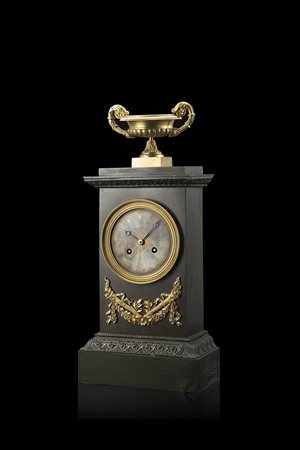 THILORIER & SERRUROT Pendola da tavolo in bronzo brunito sormontata da vaso...