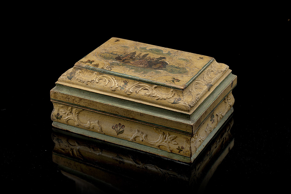A lacquered wooden box (cm 26x12x20) Piedmont, early 19th century