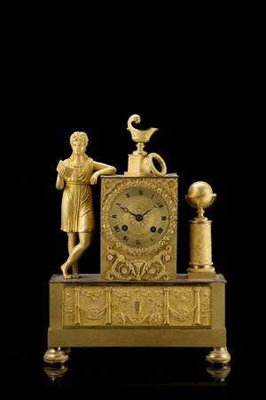 Ormolu mantel clock modelled with the allegory of "The Arts"