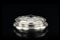 Scatola in argento di forma ovale bombata e sagomata con superficie martelè,...