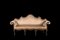 Divano a orecchioni in noce con schienale sagomato, montanti, fascia e gambe...