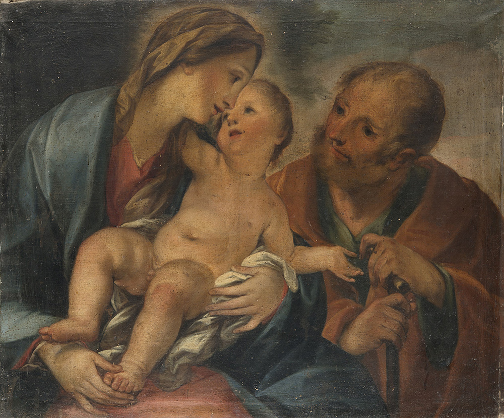 Venetian School, 18th century, “The Holy Family”, oil on canvas (cm 78x92) framed
