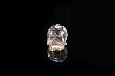 Antico teschio in quarzo ialino scolpito da un unico blocco. Arte mixteca o maya (cm. 3,2x2,2) (difetti). Provenienza: Brinkmann, Napoli