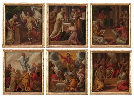 Scuola veneta del secolo XVII "Sei episodi evangelici" olii su tavola (cm...
