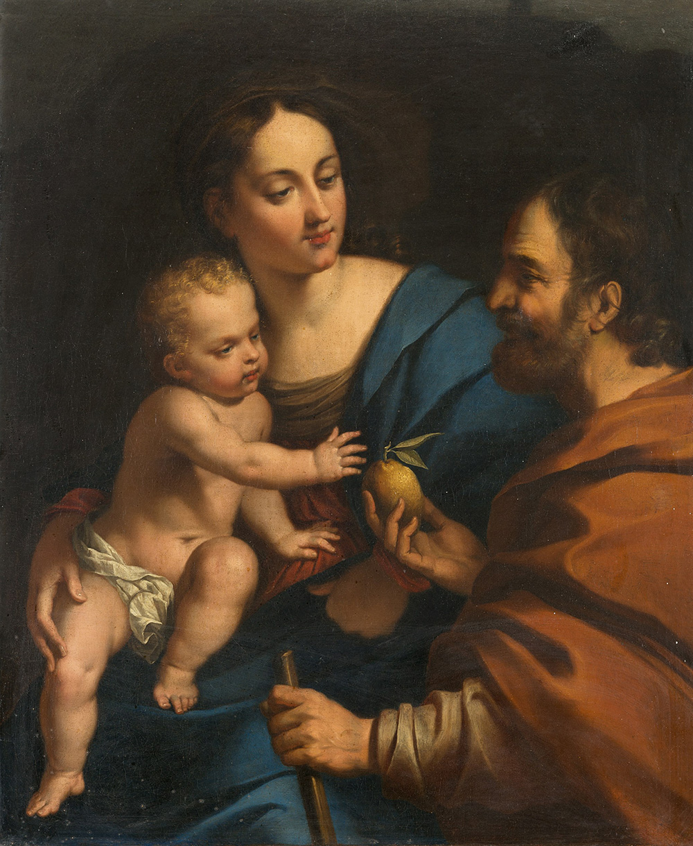 18th-century northern italian school "the Holy Family" oil on canvas (cm 98x81) framed (defects)