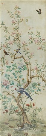 Pannello papier peint dipinto con racemi vegetali e volatili. Sec. XIX (cm...