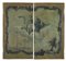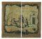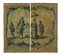 Scuola veneta, sec. XIX "Allegorie" gruppo di cinque pannelli divisi in ante in legno laccato nei toni del verde (misure diverse, difetti e restauri)