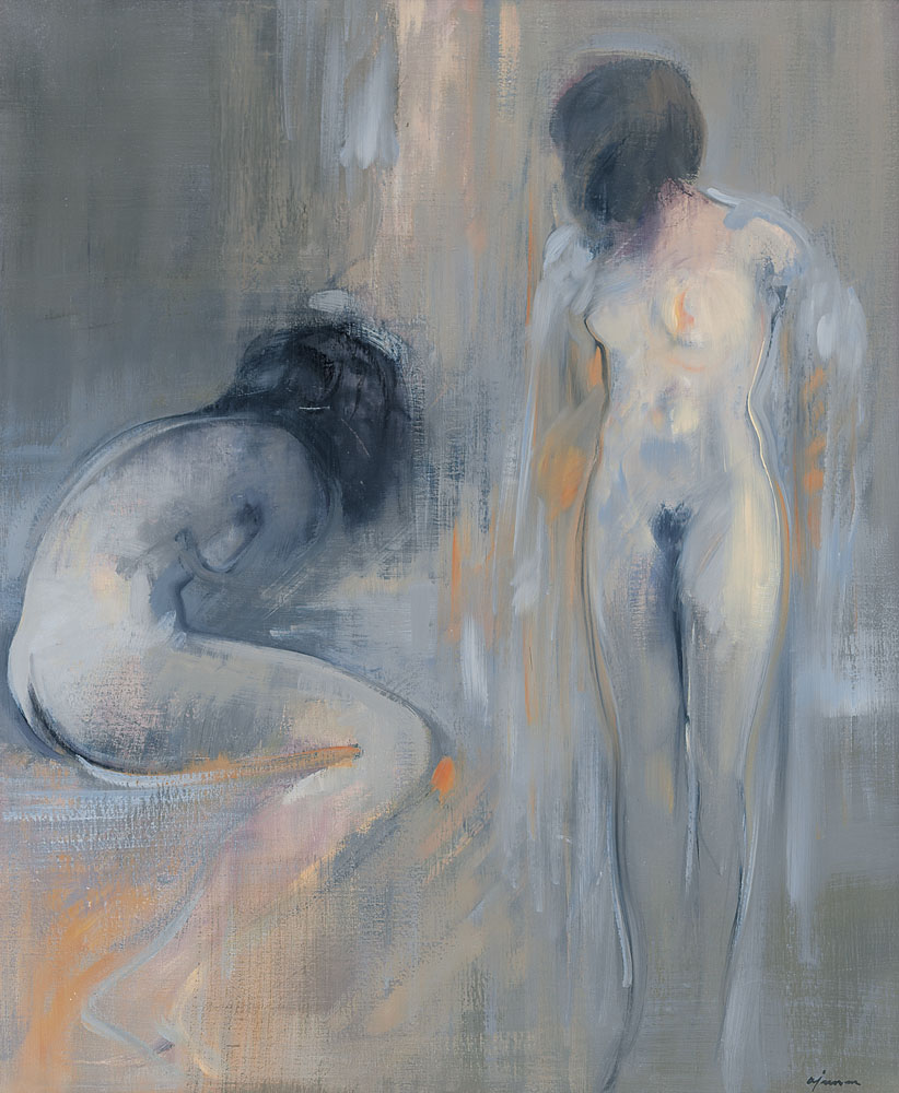 GIUSEPPE AJMONE Carpignano Sesia 17/02/1923 - 07/04/2005 - Figure, olio su tela cm. 61x50, firma in basso a destra, dichiarazione d'autenticità dell'artista su foto.