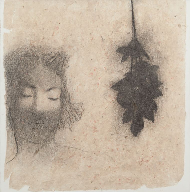 charcoal on silkpaper on canvas 19,68x19,68 in