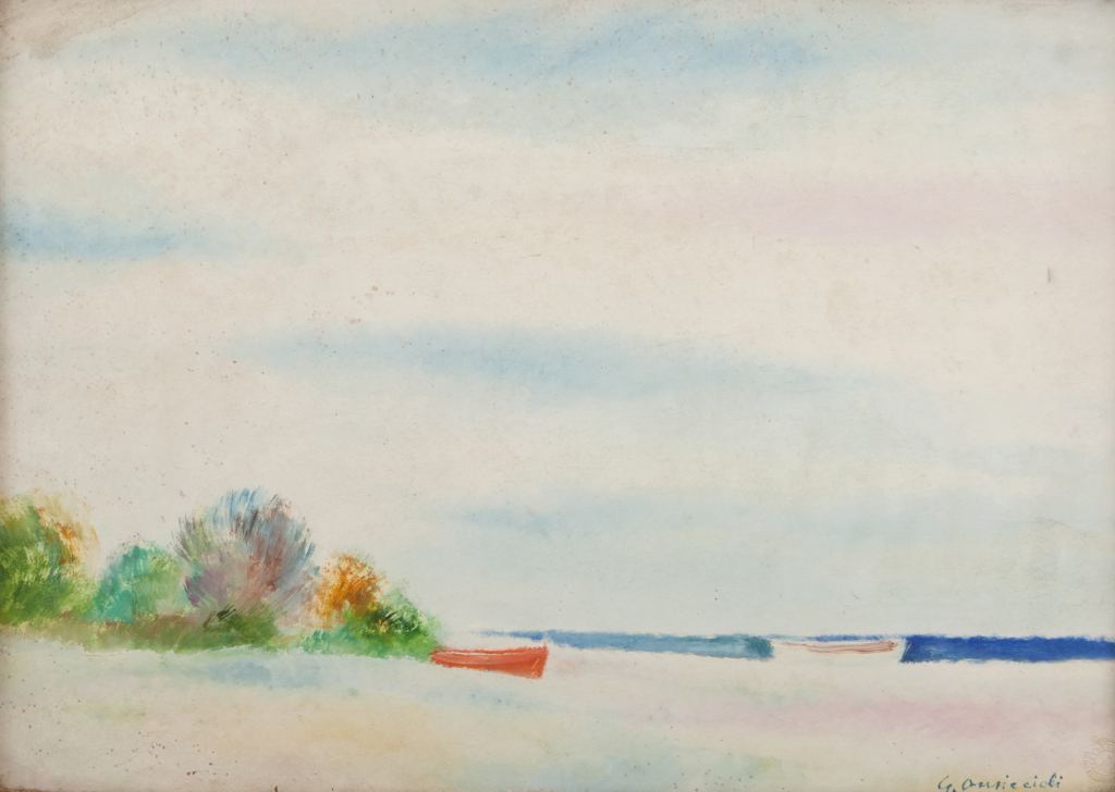 GIOVANNI OMICCIOLI (1907-1975) Senza titolo (Paesaggio)olio su cartone cm...